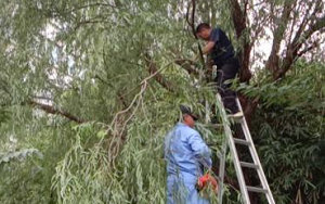 | 2020年7月31日上午,高正集團特檢院項目部保潔員在清掃時發現有馬蜂出沒,仔細觀察發現園區綠植上有一個大蜂窩。 |