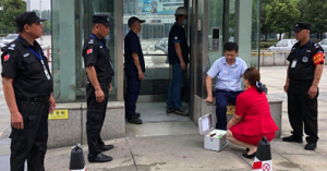 | 梅雨季節(jié),青苔是最容易滋生的植物。投資廣場污水排水管道因市政軌道施工而被堵住,只能依靠排水泵自主排水到路面 |