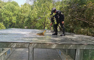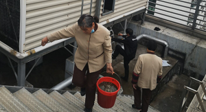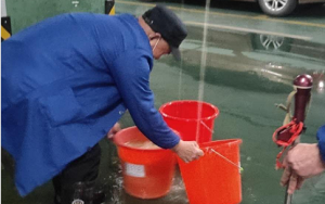 | 五月汛期即將來臨,高正集團低溫中心項目部白班保安在外圍巡邏時發現,外圍排水溝內有許多罐車檢驗后的殘渣、淤泥、鐵銹等 |
