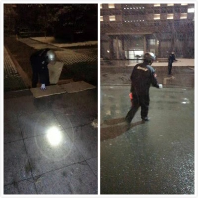 因為需要保障道路通暢,為業主提供出行方便,物業人必須在第一時間將積雪鏟除,防止上凍,以免進出滑倒,導致意外事故。物業人員將提前就準備好的化雪鹽把車庫出入口都撒了一遍,然后鋪上防滑草墊,以防路面發生結冰現象。同時,夜班值班的保安拿著掃把清除積雪,加緊小區路面冰凍情況的排查,保證業主車輛出行通暢安全,用貼心的服務給業主們增添了絲絲暖意。
