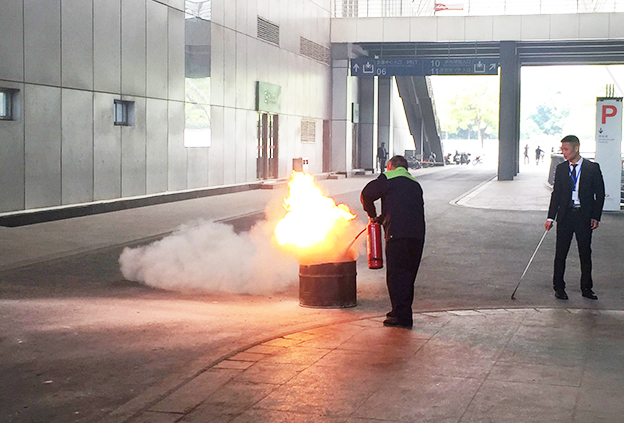 為了提高員工的消防意識,2019年4月19日早上九點,奧體中午物業管理部聯合甲方一起進行了一場別開生面的消防演練,甲方領導先對這次演練的流程進行了講解,演練開始時由保安扮演的歹徒在現場進行縱火,現場保安發現后立即阻止并報告隊長,保安隊長在接到保安呼叫的時候第一時間帶著防暴隊將歹徒制服,同時部分保安就近取來滅火器將火苗撲滅,并將周圍圍觀的人員進行疏散,最后甲方消防領導講解了火災的基本常識、滅火基本常識、火災逃生知識和滅火器的使用注意事項,隨后保潔們拿起滅火器進行實際操作,保安保潔們紛紛表示,通過自己的實際操作和學習,不僅掌握了滅火器的使用方法,還增強了消防安全意識,提升了撲滅初期火災的能力也對發生突發事件的處理方法有了一定的了解。