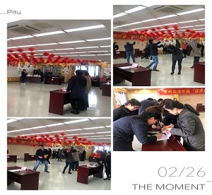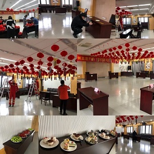 大家早早就開始精心準備,布置活動現場。所有人員配合管理組按活動分工要求完成,維修人員負責現場音響安裝調試、會場上燈謎區空掛帶燈謎的燈籠若干,保安人員負責布置懸掛橫幅、兌獎臺的布置,桌椅有序排放。其他人員負責獎品及點心的擺放,經過大家兩天精心周到、細心、溫情的布置,現場終于烘托出溫馨喜慶的元宵氣氛。