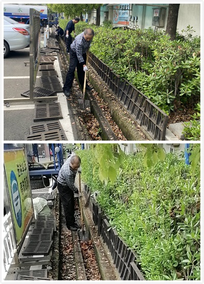 保安師傅先把污水溝蓋板掀開,將落葉清掃完畢,然后用鏟子把污泥鏟除,再用水管把地面沖洗干凈,接下來開展下水道疏通清理工作。由于后廣場污水溝都是槽罐車、送檢車輛沖入的磚塊、泥土,直接用鐵鍬鏟不動(dòng),維修師傅只能先用小鋤頭一點(diǎn)點(diǎn)撬開,然后再用鐵鍬進(jìn)行清鏟。在他們的共同合作下,終于讓我們守護(hù)的美好家園變得干凈整潔,讓人身心愉悅。