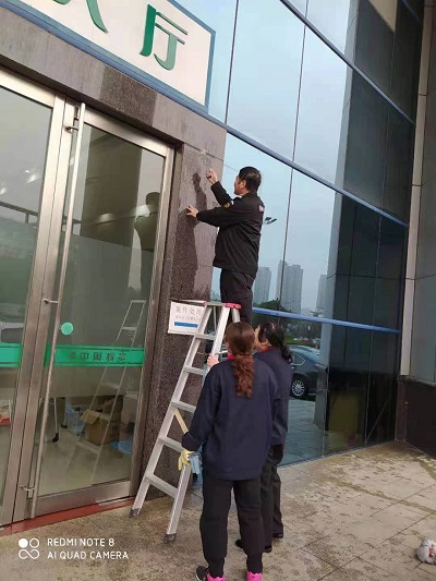 近日,武進(jìn)煙草項(xiàng)目辦公大廳門口的墻面上有貼廣告紙的膠粘在墻面很大一塊,保潔們巡查時(shí)看到了就去清理上面的膠紙,可是膠紙粘的位置很高根本夠不到,她們就去找了個(gè)扶梯,但是又不敢爬。這時(shí)候保安隊(duì)長(zhǎng)看到立即上前幫忙,一名保潔員扶著梯子,另外一名保潔員拿來(lái)除膠劑和抹布進(jìn)行清理,沒(méi)一會(huì)功夫,膠紙被清理的干干凈凈!