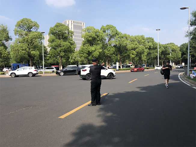 外圍車輛較多,故安排保安在三岔路口進行交通秩序維護,指揮來往的車輛停至指定停車場,或者有序的停放在外圍道路兩邊,同時安排了保潔對外圍的地面環境進行了清掃,中午時間段安排了5名保潔將展館內的垃圾桶全部拖出來,三名保潔一起將滿是盒飯和塑料瓶的垃圾桶一起抬上垃圾車進行清倒,確保了垃圾桶不會因為天熱而散發出難聞的異味,通過保安和保潔們的不懈努力,確保了此次展覽會的圓滿舉行,得到了甲方的認可與表揚。