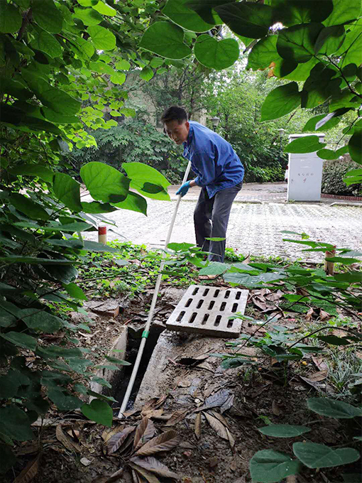 進入仲夏,南方迎來了黃梅季。在黃梅季節里,天氣比較惡劣,時不時的就會下起大雨和暴雨,所以在好天檢查樓頂平臺還有下水道是否通暢就是我們項目上兩個師傅每天必做的事情之一,一發現有什么我們師傅就可以馬上解決疏通。近日兩個師傅巡查到27號樓的時候,發現在地下停車庫邊上有一個雨水井下水有點緩慢,我們項目上老金師傅發現這一情況后,及時的掏取下水井里的垃圾。我在此特意要說的是,我們老金師傅在上個月維修過程中有一只腳扭傷到了,但他沒有因為扭傷的腳而休息過一天,而是堅守在自己的崗位上,積極的配合我們管理部的每一個報修。