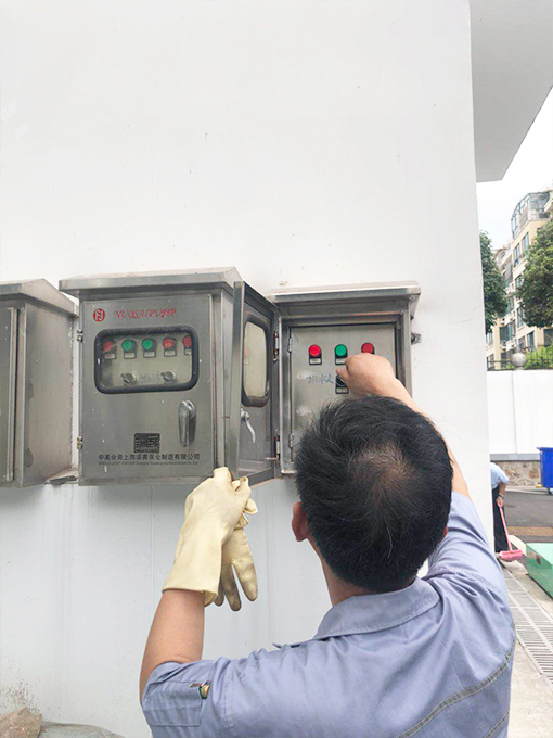 第二:啟動抽水泵。平時抽水泵處于自動狀態,集水井水位到達一定位置,水泵自動抽水。當天手動開啟抽水泵,查看工作狀態,無異常。且培訓相關員工抽水泵的使用及注意事項,當遇到緊急情況,都能第一時間處理。