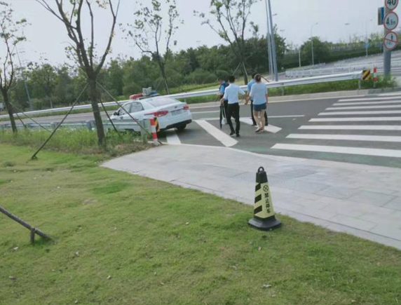 2019年7月6日15:40分,景觀湖保安員芮小良發現一名女子從湖邊直奔湖中心深處,當即大聲喝止并用對講機呼叫班長,該女子并未聽從保安員管理,保安員利用崗亭配備的救生器材進行施救。相鄰崗位的保安員也迅速到達現場進行協助救援,保安班長按流程逐步匯報并報警處理。該女子被救上岸后,為了安全起見幾名保安員輪番進行開導,直至民警抵達現場將女子帶走。