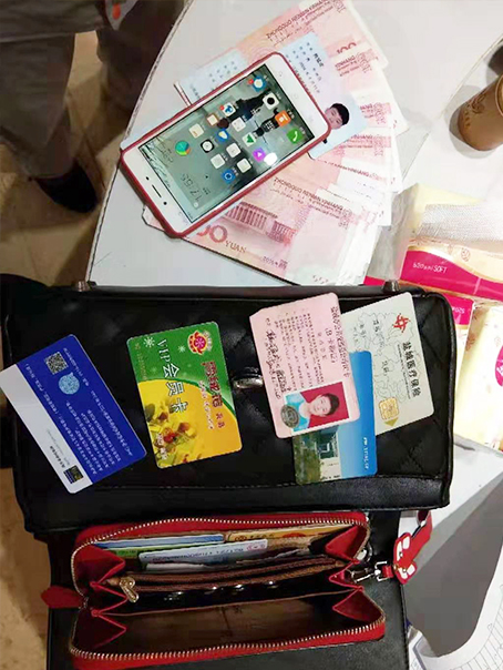 2019年8月1日17:50 分保潔員周書蘭吃過晚餐后回到崗位上,當打掃至女衛生間32號時,發現行李架上有一個女式包,當時第一反應就是:包一定是顧客如廁后遺失的,顧客丟失后肯定著急,周書蘭立即打電話給現場值班管理員,管理員接報后第一時間趕到現場,領著周書蘭拿著包前去服務臺,在服務臺工作人員的見證下打開包,包內有現金1505元,手機一部,身份證三張,戶口簿及各類證件和多張銀行卡,服務臺工作人員通過廣播尋找失主,通過10多分鐘不斷播放,但不見失主前來認領,失主有可能暫時未發現包已丟失,已經離開服務區,只好做好登記后存放在服務臺。18:53分失主發現包丟失,用其他手機打電話咨詢,經確認協商后,失主決定前來認領,失主于當日20:10到達服務區,經現場確認后,把包歸還給失主。失主拿到包后拿出500元以表謝意,被管理員婉言謝絕,跟他解釋這是我們義不容辭的責任。失主對工作人員的服務及員工拾金不昧的精神表示感謝!并致電96777反饋事情經過,失主在服務臺前用手機發了條微博:(用最臟的手,掙最干凈的錢!請珍重奮戰在烈日下一線員工:由于天氣炎熱,室外氣溫高達35℃-40℃以上,請大家不要亂扔垃圾,有部分工人因天氣太熱入院,他們很多還是50--60歲以上的老人,而他們卻拾金不昧,不求點贊,只求轉發!還附上了幾張照片),8月2日96777發來表揚信一份。