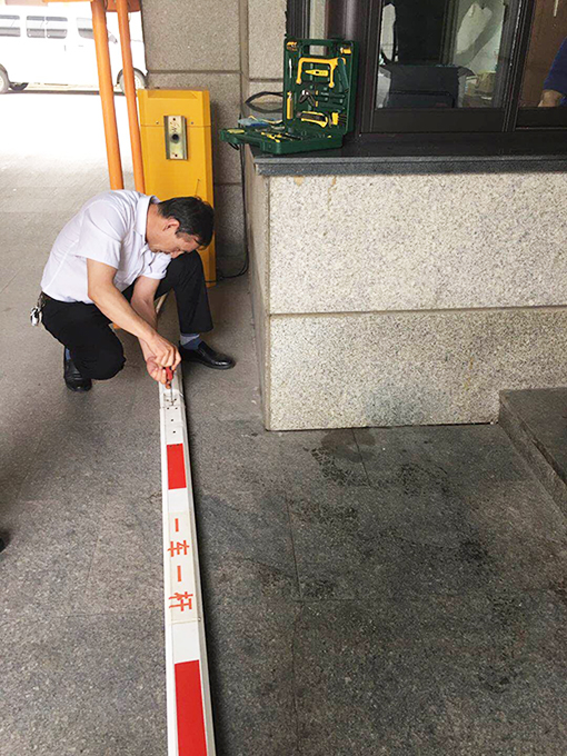 王宏臣同志自來到項目部,一直兢兢業業,他不僅擔任著保安隊長一職,同時還兼任著項目部維修的擔子,一直以來,無論甲方大小物件損壞或者項目部有任何需求,他都第一時間趕到,無怨無悔,并且每天不厭其煩的巡視檢查各種設施設備,包括是否存在安全隱患,不僅如此,他每天還要巡查室外公共設備情況,及時修復受損設備,這不,在巡視時發現項目部后院進出車庫道閘出現了動作卡頓、傾斜等現象,他二話沒說,拿起工具就在太陽公公的照射下修補起來,完全不在意汗水的淅瀝,修補的過程中,也為甲方節約了成本!