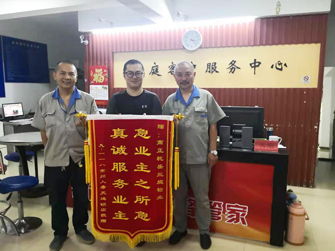 商鋪業主看到兩位師傅這樣為業主服務都感動不已,一致為維修師傅點贊,9-118業主更是寫了感謝信表達自己的感激之情,之后還做了一面錦旗,急業主所急,真誠服務業主,我們當即表示謝謝業主對我們的肯定。
