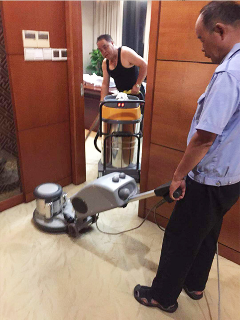 一樹一菩提,一沙一世界,生活的一切原本都是由細節造成的,而細節往往最容易被人忽視,殊不知這最不起眼的細節往往決定了事情的成敗,百分之一的失誤導致了百分百的失敗。水務大廈管理部本著細節決定品質的管理方針,為了不影響甲方領導正常辦公,管理部決定,8月9日至8月13日將利用四天夜晚時間將八個局領導的辦公室里面的羊毛地毯全部清洗一遍,地毯雖然不是很臟但年數已久,顏色已泛黃總給人蒙上一層灰的感覺,我們的員工先是用大功率的吸塵器將灰塵或有污染的地方吸塵,再將清潔劑稀釋在地毯上全面噴灑,等待10-15分鐘后,污漬脫離纖維,再用洗地機抽洗,在洗地毯的同時用吸水機吸干凈已經洗完的地毯,由于局長辦公室地毯又厚毛絨又多,吸水性又強,所有要有兩個人配合一個清洗一個跟在后面立即吸水,這樣羊毛地毯干的快又重新恢復了光潔亮麗。這一項零打擾服務得到了甲方的肯定和贊揚。