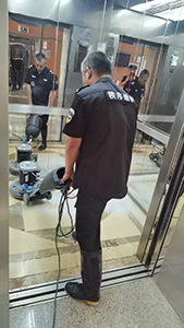為打造一個更好的生活工作環境,水務大廈項目管理部決定利用周末時間對各電梯的轎廂大理石進行拋光打蠟。首先保安員先把大理石表面雜物和灰塵清理干凈,使用中性洗滌劑清洗地面上的污漬,再用抹布將多余水分吸干,因為潮濕的表面是不能進行打蠟的,需要用干抹布加速地面干燥過程。等地面完全干燥后,再用專業的大理石拋光蠟均勻地涂在大理石表面,用專門的拋光機進行拋光,一直一遍一遍的循環動作,直到表面光亮整潔。
