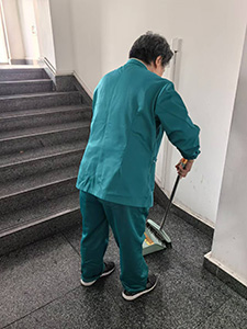 由于一樓門診人流量大,公共廁所通風環境比較差,容易產生異味,何總親自在此樓層公共廁所安裝芬香機,并且要求保潔人員增加對公共廁所的巡查與打掃次數。芬香機的安裝一方面掩蓋了異味,一反面制造了一個舒適的如廁環境。戴主管下午意外發現住院大樓二樓環繞區域臟,平臺上煙頭比較多,立馬安排師傅打掃,由于平臺區域比較危險,戴主管不懼危險親自上陣,爬上平臺進行清潔工作。