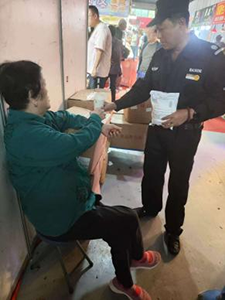 下午2時左右,正當(dāng)展會進(jìn)入高潮之際,一位阿姨突然感到頭暈?zāi)垦#樕n白。這一幕恰好被巡邏至此的保安人員張立財(cái)敏銳捕捉。他迅速行動,第一時間為阿姨找來椅子,讓她得以安穩(wěn)坐下休息,同時,緊急聯(lián)系展會現(xiàn)場的醫(yī)護(hù)人員前來援助。