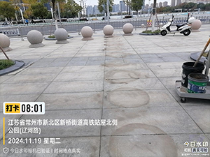 石球遷移完畢后,保潔人員迅速跟進,仔細清洗地面上遺留的原石球印記。她們認真擦拭每一處痕跡,使地面恢復潔凈,與重新布局的石球相互映襯,讓北廣場整體環境更加整潔、美觀、大方。