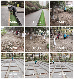 因受多風氣候影響,主干道落葉明顯大幅度增多,落葉清掃不及時不僅影響綠化環境,還潛伏火災安全隱患。冬季樹葉多四散分布,道路、綠化區藏匿的落葉清掃難度加大,保潔根據“路段不同、落葉數量不同”的特點,增加人員配置,分段分區全范圍對道路兩側、綠化區進行大面積清掃。針對較難處理的邊角縫和衛生死角,保潔采用人工和機械化方式相結合進行清掃處理,絕不落下任何一處角落。隨后,工作人員將清掃完的落葉裝袋打包統一收集裝車清運,確保落葉隨落隨清。