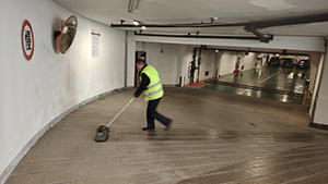 水務大廈的地下車庫是環氧地面,要定期的保養打蠟才能保持長久地光亮,地庫面積較大,清潔打蠟的工作量自然就重,我們的保潔組提前對整個清潔工作進行了部署,集合人員集中力量對地面進行沖洗去除污漬及灰塵,不放過任何一個衛生死角,進過一番努力,地下車庫被打掃的的锃光瓦亮,煥然一新!