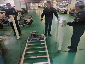 為高效且低成本地解決這一難題,保安主管華春龍充分發(fā)揮創(chuàng)新思維與資源利用能力,決定利用舊護(hù)欄對該三角空間進(jìn)行封閉改造。在施工過程中,維修班工作人員協(xié)助進(jìn)行了精心測量、安裝,確保舊護(hù)欄的重新搭建既牢固又美觀。同時,為進(jìn)一步杜絕此類不文明現(xiàn)象的發(fā)生,安保部在封閉區(qū)域顯眼位置附上了 “禁止隨地大小便” 的宣傳語,并配以醒目的圖案標(biāo)識,以起到警示作用。