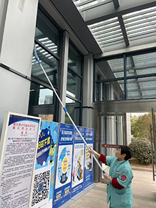 清潔過程中,保潔員們展現出了高度的專業與專注。高的玻璃清潔難度較大,憑借嫻熟的技巧和無畏的勇氣,小心地擦拭著每一塊玻璃,不放過任何一個污漬和灰塵。保潔員們則更加注重細節,仔細清理窗框縫隙中的污垢,用玻璃刮將玻璃刮得光亮如新。經過幾天的連續奮戰,院區內的玻璃煥然一新。透過干凈明亮的窗戶,欣賞著蛇年的美景,心情格外舒暢。不少醫生對保潔團隊的工作贊不絕口,說道:“這玻璃一擦,感覺都亮堂了,物業保潔太貼心了!”