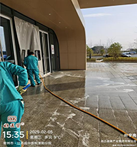 針對毛石地面縫隙多、易積塵的特性,高壓水槍對頑固污漬進行定點清除,配合專用石材清潔劑軟化油,最后通過人工刷洗確保石縫潔凈。作業(yè)期間,保潔團隊實行錯峰施工,在早間7:00前完成主干道清洗,最大限度減少對就診通行的影響。在相互協(xié)作、相互幫助的氛圍中,原本繁重的清潔工作變得輕松愉快,各個區(qū)域的清潔任務(wù)也得以快速、高效地完成。