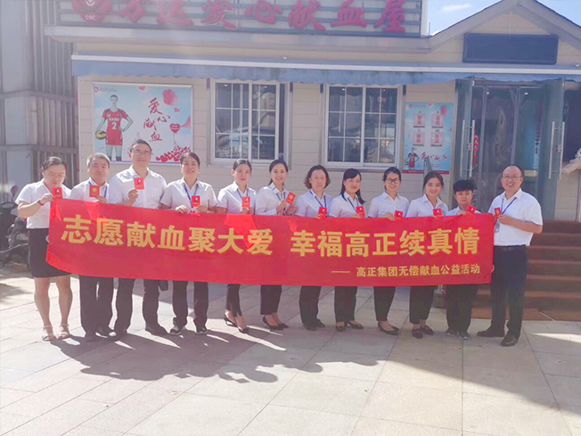 無償獻血是一項普通而偉大的公益事業,是愛心奉獻的體現。江蘇高正集團感恩社會各界的支持,一直堅持履行社會責任,盡己所能回饋社會,從高層領導到基層員工,多年來均堅持定期無償獻血。