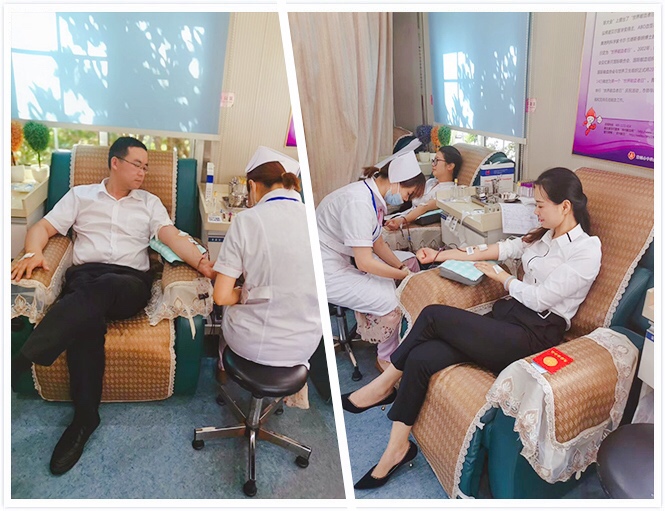 在獻血活動正式開始前,他們已早早排隊等候,采集登記處很快便排成了一條長龍。在醫護工作人員的協助下,填表、化驗、等候、抽血,一切工作安排非常嚴謹而又細致。看到一位位熟悉的同事,伸出自己的手,傳輸愛的鮮血,他們臉上無一不帶著快樂而自豪的笑容。