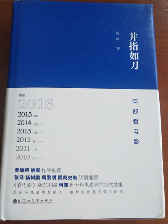 如今,阿郎把這些卷首語(yǔ)集結(jié)成一本書(shū),成為看電影的隨筆《并指如刀》。阿郎在書(shū)中剖析了電影既作為藝術(shù)又作為商品的光怪陸離的方方面面,涵蓋了電影工業(yè)、資本、票房、導(dǎo)演、演員、觀眾、人性、道德、技術(shù)、日常生活等話題,沒(méi)有晦澀高深,只有并指如刀的凌厲——所謂“愛(ài)之深,責(zé)之切”,就是因?yàn)橛懈嗟臒釔?ài),才會(huì)有太多的批評(píng)吧?我仿佛看到在幽暗的電影院里,端坐著一個(gè)戴3D眼鏡的魯迅,目光如炬,透過(guò)景深和出屏效果,一直看到諱莫如深的幕后。而他的身邊,則是一群抱著爆米花的觀眾,要么昏昏欲睡,要么興奮莫名,直至燈光亮起,劇終人散。文字與電影,世界上最好的兩樣?xùn)|西成為了他的工作,這是何其幸運(yùn)。阿郎說(shuō):“我喜歡看完電影后,用文字再現(xiàn)的過(guò)程!蔽乙蚕矚g,但只能艷羨。
