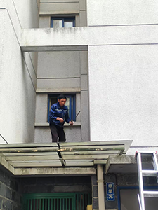 由于門頭夾縫位置較高、空間狹小,清理難度較大,工作人員不畏困難,小心翼翼地登上梯子,仔細(xì)清理平臺上的每一處垃圾,確保不留死角。經(jīng)過兩天的努力,小區(qū)所有單元門頭煥然一新,雜物被徹底清除,干凈整潔的門頭,成為小區(qū)一道亮麗的風(fēng)景線。