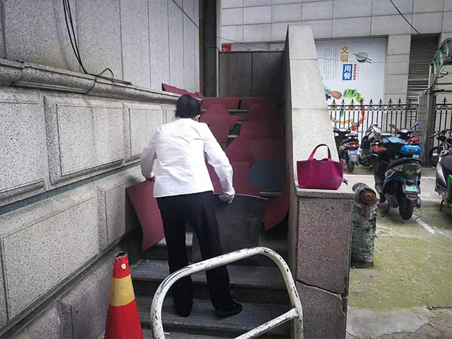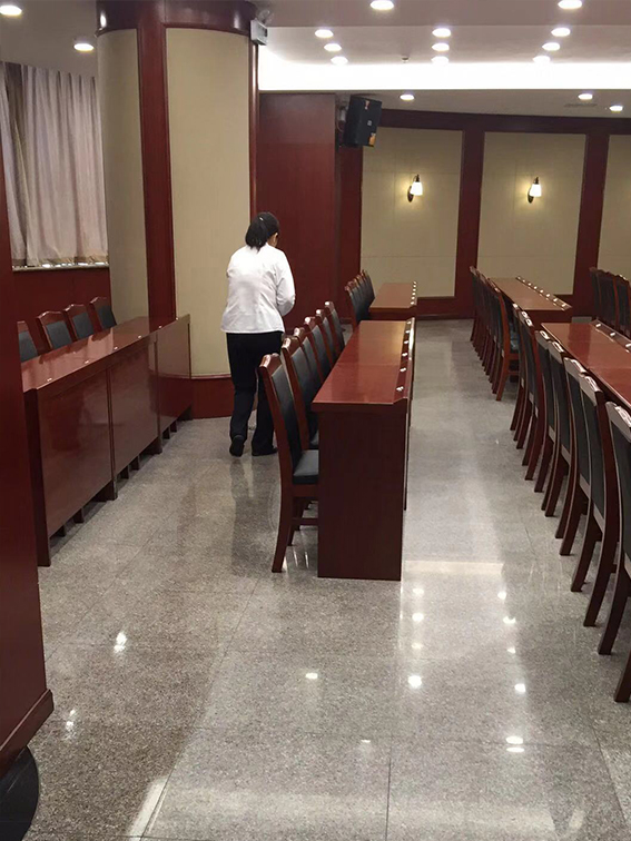 投資廣場是一個已經(jīng)有20幾年的大廈了,因大廈的員工所有的開會和活動都是在4樓的會議室。為了更好的為業(yè)主服務,提高服務質(zhì)量,提升大廈的形象。投資廣場項目部把會議室的地毯一塊一塊拿出進行清洗晾曬,在不影響大廈業(yè)主出行的情況下,項目部的保潔工作人員利用手推車把地毯從4樓運至大廈廣場東面一座廢棄的充電房旁進行晾曬。為了更好的充分的晾曬,每天項目部保潔人員會對地毯進行翻面。并且項目部每天還對4樓會議室進行徹底的打掃。保潔人員對每一張桌子,每一張椅子都反復擦洗。對地面一遍又一遍清理。項目部還出資買來水管對會議室外部邊緣進行清洗。項目部的做法得到了大廈業(yè)主的一致好評,每當有員工開會,一走進會議室看見明亮又干凈整潔的環(huán)境,都紛紛豎起大拇指,連連稱贊。由于業(yè)主的肯定,項目部也是由衷的感到高興。