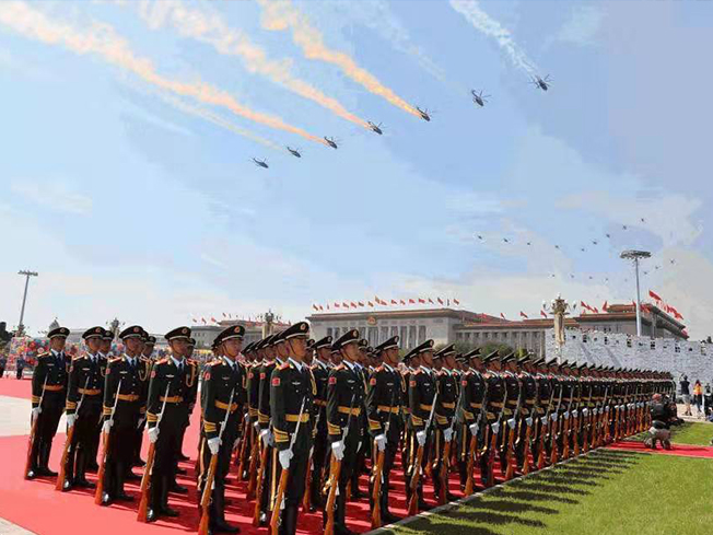 國旗護(hù)衛(wèi)隊(duì)伴著雄壯的國歌聲,護(hù)衛(wèi)著鮮艷的五星紅旗冉冉升起,激動(dòng)人心的時(shí)刻隨之而來!黨旗、國旗、軍旗迎風(fēng)招展。習(xí)主席驅(qū)車來到三面旗幟前停車肅立,向旗幟行注目禮。在肅立行駛的檢閱車中同海陸空三軍問好,同志們好!同志們辛苦了!主席的問候如和煦春風(fēng),溫暖軍心。主席好!為人民服務(wù)!官兵們的回答似驚雷回蕩,山呼海應(yīng),隨后,分列式檢閱開始,三軍儀仗隊(duì)護(hù)衛(wèi)著軍旗率先通過天安門廣場,其余15個(gè)徒步方隊(duì)依次接受檢閱,“咚-咚-咚”多么鏗鏘有力的步伐,踢出中國人民的尊嚴(yán),戰(zhàn)士們一個(gè)個(gè)意氣風(fēng)發(fā),斗氣昂揚(yáng),有種萬人不擋之勢,浩浩蕩蕩,氣勢恢宏,32個(gè)裝備方隊(duì)以排山倒海之勢隆隆駛來。展示著我們偉大祖國的日益強(qiáng)大,看著中國自主研發(fā)已達(dá)世界先進(jìn)水平的武器,我心中感到無比的驕傲和自豪。有了強(qiáng)的國,才有富的家。就像我們高正集團(tuán)一樣,在優(yōu)秀領(lǐng)導(dǎo)者的領(lǐng)導(dǎo)下,一定會(huì)成為代表世界最高水平的優(yōu)秀企業(yè)。
