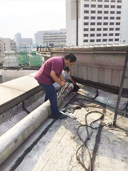 投資廣場由于時代久時間長,再經過常年的風吹日曬在原來樓頂做過防水的地方就會出現一些細小的裂縫。在平時天氣晴朗的情況下,這些小裂縫會不起眼,但是在下雨和惡劣的天氣情況下就會出現問題。雨水會沿著這些小裂縫慢慢的滲漏到下面去。雖然下面是會議室,但是為了更好的為業主服務,及業主所急,更好為業主所想,投資廣場項目部決定對樓頂平臺進行防水施工,徹底為業主解決滲水問題。項目部選擇優秀有資質的防水施工隊。施工人員和工程部戴師傅一起爬上樓頂平臺,一邊試著漏水點,一邊做著標記。把原來的材料一點一點的剝離。由于樓頂風大,人站在上面好像要被風隨時吹走似的。但是為了更好的為業主服務師傅們克服心里的恐懼。拿著施工工具噴槍和防水棉小心翼翼的一點一點把查找到的漏水點修補好。時間過得好快一轉眼大半天過去了。這時師傅們才感覺肚子在咕咕叫,才想起還沒有吃飯呢。雖然忘了吃飯,但是能為業主排憂解難是最大的欣慰。也是投資廣場項目部最大的目標。