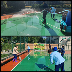 經過數小時清洗,原本布滿塵垢的籃球場煥然一新,地面潔凈鮮亮,防滑效果顯著提升。甲方運動會負責人實地查看后連連稱贊:“物業提前籌備、細致服務,讓我們對賽事更有信心!