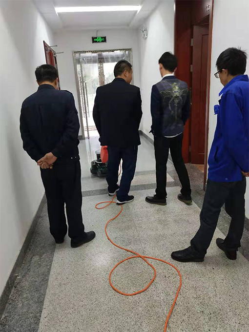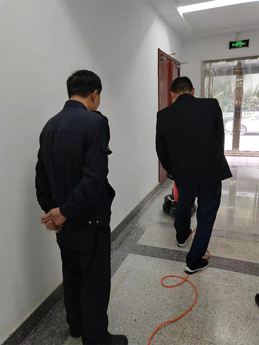 9月下半旬項目主管在日常每周檢查衛生以及安全時,發現五樓會議層電梯門口以及一樓接待大廳的地磚花崗巖石材都有深淺不一的污痕,地面顯得非常臟亂,在使用潔而亮堿水等一系列清潔方式之后都沒有很好的效果。就去跟特種設備安全監督檢驗研究院甲方建議是否需要借助外力來恢復地面整潔,結果是需要借助外力,項目部聯系公司總部派專項技術人員來看了下覺得需要翻新地面,情況匯報甲方后決定自己購買翻新機,2019年10月29日機器藥劑以及人手都準備好的情況下,劉師傅姜師傅開始觀摩公司專項技術人員怎么安裝翻新機并且記錄步驟,從后廚門口開始做翻新地面,更換磨片開始翻新,姜師傅以及劉師傅并且周邊單位過來觀摩現場學習機器使用與注意事項,藥劑的比例, 29日學習了翻新技術,30日上午鄧師傅開始示范拋光地面,要換上別的紅磨片開始新的步驟,劉師傅姜師傅也積極在旁邊記錄以及學習,以方便今后地面的維護保養。這一次我們學習到了地面的翻新打磨拋光以及打蠟,一次維護能夠長時間保持地面的干凈整潔。