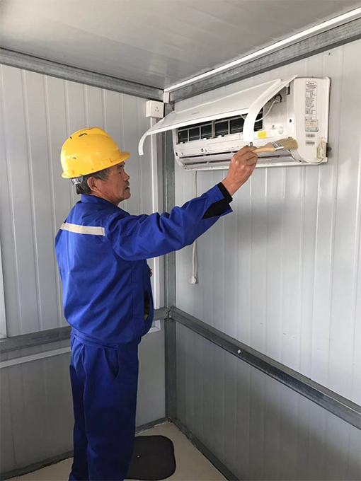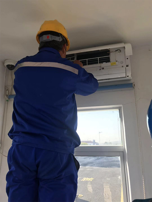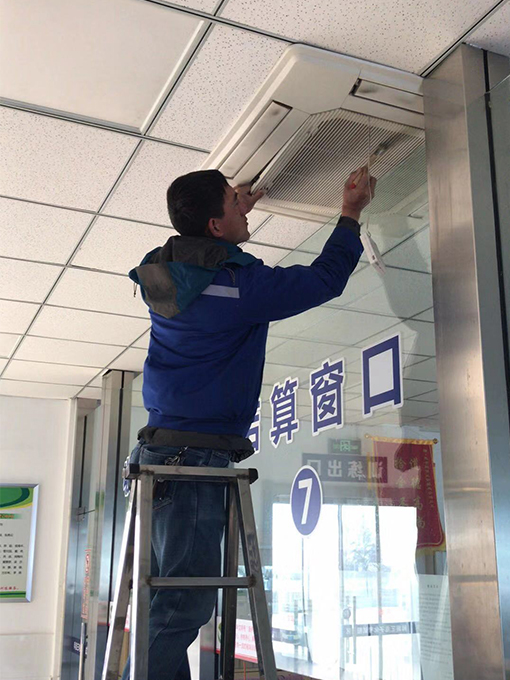 場內空調數(shù)量十分之多,有掛壁式、柜式,還有鑲嵌在天花板上的中央空調,清洗的工程量也很大。我們安排了三個維保組工人進行這項工作,一個水電工負責空調試用、記錄及線路檢查;一個負責拆卸空調網(wǎng)片;還有一個負責清洗網(wǎng)片;三個人相互協(xié)做。掛壁式空調比較好處理,只需將空調機殼打開,取出內置的兩片過濾網(wǎng),因過濾網(wǎng)不常清洗,網(wǎng)片上沾滿了灰塵,十分的臟,負責清洗的維保工人利用板刷把網(wǎng)片在拖把池內進行清洗沖刷干凈,再由拆卸網(wǎng)片的工人進行安裝上去,然后用抹布將空調機擦拭干凈。柜式空調機較為難處理,需將柜式空調機外殼用十字起拆卸下來,取出濾網(wǎng)進行清洗。中央空調機需要登高進行拆卸并擦拭。空調是我們日常生活中非常重要的電器,夏季制冷、冬季制熱,因長時間不使用導致空調灰塵堆積,如果不清洗、不擦拭的話,那再次使用時吹出的風便會對人體產(chǎn)生不好的影響;且因長久不使用空調發(fā)生故障,我們的檢查也能及時的去進行處理,避免影響后期的使用。