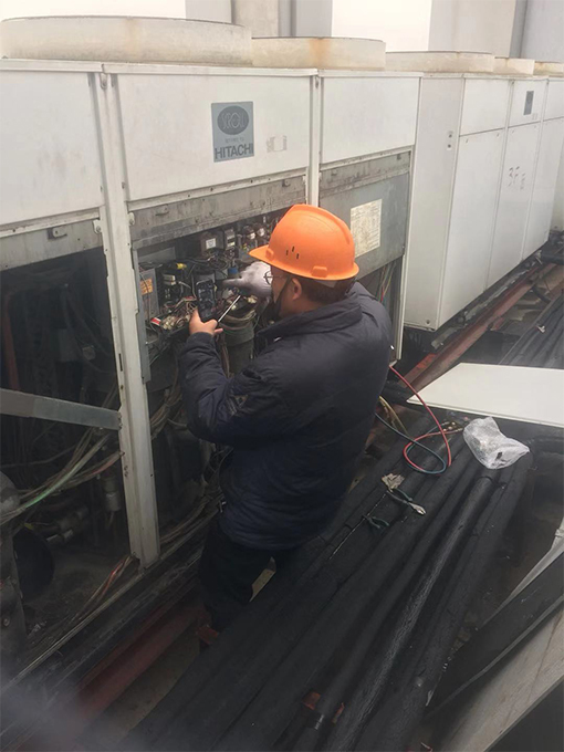 這么冷的天,我們的丁主任帶著空調維修師傅老方到頂樓檢查空調外機,為了達到最佳效果,在充分聽取專業技術人員的分析和多方咨詢后,不惜增加投入進行除垢處理以提升系統的熱效率。為了保障2019年冬季的供暖正常運行,公司在夏季空調剛停運就立即督促項目開始進行,通過一段時間的施工,11月底,重新維修和效率提升后的空調一次開機成功,投入正常使用。