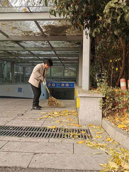 樹葉紛紛落下,影響小區(qū)內(nèi)的環(huán)境衛(wèi)生,為了給業(yè)主營(yíng)造一個(gè)良好的生活環(huán)境,保證道路的干凈整潔,丁主任要求保潔阿姨加大清掃力度,做到落葉清掃日落日清,采用落葉裝袋,對(duì)落葉較多的道路重點(diǎn)加強(qiáng)巡回保潔,使小區(qū)主次干道的落葉得到了及時(shí)清掃。