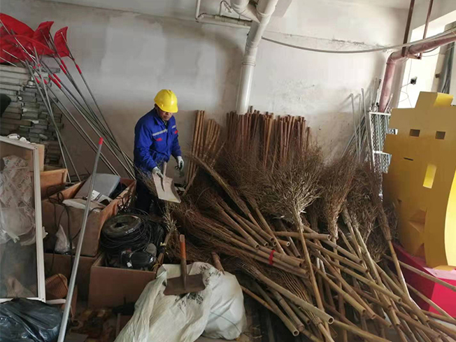 因去年的大雪,甲方留下了很多的除雪工具,如洋鍬、耙子、鏟子、大竹掃帚等,這些工具多少都有些損壞,我們便安排了2名維保人員進行清點及修理,以便后期的使用。物業部雖沒有耙子和鏟子,但也采購了些洋鍬和大竹掃帚,以備不時之需。