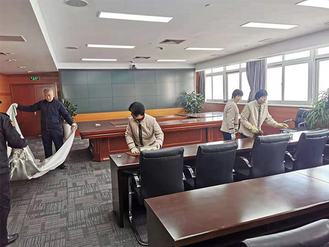 今天一上班,丁主任就說要去打掃會(huì)議室,安排我們的保潔阿姨和保安員,他們聽到通知后立即都拿了各自的工具,來到了11樓會(huì)議室。為了創(chuàng)造一個(gè)整潔有序的辦公環(huán)境,保潔阿姨們開始了他們工作,有的搽桌子,有的搽凳子,會(huì)議室的桌子都是深顏色的,一般都得搽兩三遍才能干凈,地上鋪的是地毯,阿姨們得用吸塵器一點(diǎn)一點(diǎn)的吸過去,才能將灰塵吸干凈。幾個(gè)保潔阿姨有條不紊的在打掃著,我們的保安師傅們則在一邊幫忙搬桌子,順桌子,將一張張搽干凈的辦公桌一排排擺整齊,看似簡單的工作,他們幾個(gè)工作人員配合的還是蠻默契的。