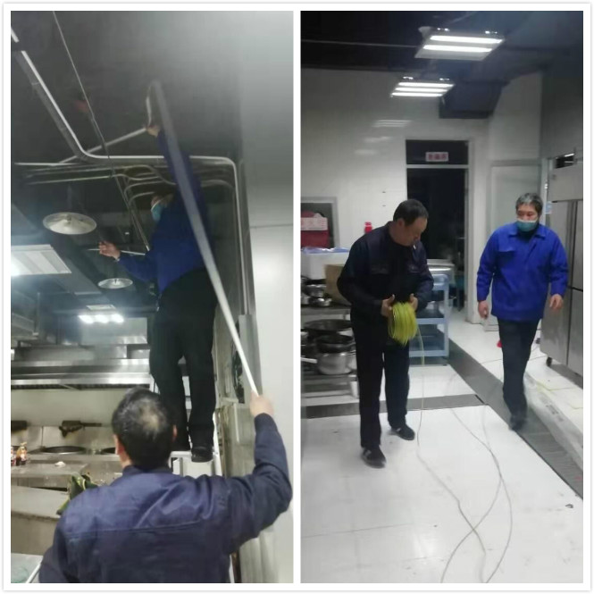 甲方食堂管理員心急如焚打電話來求助我們物業,雖然食堂不是屬于我們服務的范圍,但是在這緊要關頭,物資不是很充足的情況下更不能讓冰箱里的食物造成浪費,于是管理部立即叫來我們的維修師傅,我們的維修師傅接到電話后立即趕來,戴好口罩,做好防護,扛起梯子,背起工具包就上了三樓食堂檢查線路。水務大廈十幾年的老線路破舊不堪,查找毛病還是比較繁瑣,我們的維修師傅一點一點的排查,終于找到頑癥經過一下午的努力,終于將食堂線路修理好了,甲方也對我們表示贊揚。