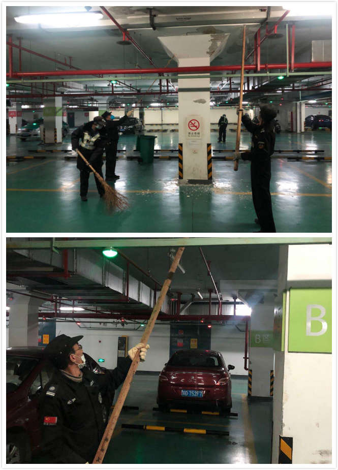 高鐵北站物業管理部開展“全員勞動日”活動到至今已有1年了,這項活動開展到現在頗有成效。近期雨水和降溫已開始“配送”,陰雨潮濕天氣導致地下停車場內頂部“脫皮”,時常會有白灰掉落至機動車上,雖已多次上報維修班維修清理,天氣潮濕時仍會有“脫皮”現象。為了防止“脫皮”的白灰弄臟或刮花車位上的機動車,區域保安在掉落處的機動車上放置草墊,確保機動車安全,F室內潮濕將有大面積的白灰脫落,為了能更好的開展停車場內工作,2020年2月29日下午13點30分,因疫情期間停車場內車輛較少,由劉源帶領保安對地下停車場的進出口、車位的墻面白灰進行清鏟,確保不會因停車場內頂部“脫皮”導致意外事件發生。同時陰雨潮濕天氣有利于細菌和病菌滋生,需加強提示員工防寒保暖,增強免疫力,謹防感冒和呼吸道疾病,自覺佩戴口罩,避免接觸人,注意個人衛生,做好現場各區域消殺工作,保持積極心態支持疫情防控工作。