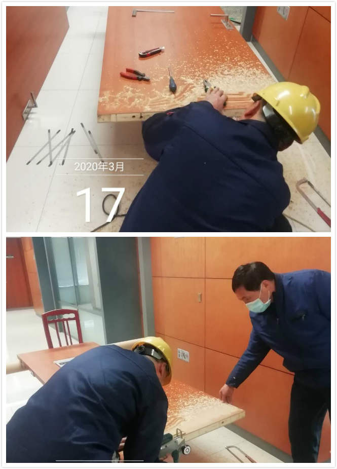 春光明媚,水務大樓物業管理部接到甲方通知需要在22樓裝修出一個健身房。接到任務后我們的維修師傅擼起袖子說干就干,戴好口罩,背起工具包就上了22樓開始大整改。辦公室里面全部清掃干凈,垃圾清理掉,門的大小發現不合適,我們的維修師傅一點一點的量尺寸,拉起電線把多余的門邊鋸掉,刨光滑,以防刮到手。經過大家一下午的努力,終于我們的健身房改造成功!目前只需要等待器材的引進,就可以每日打卡健身了。