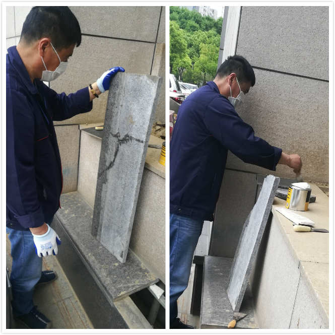高正集團特檢院項目保安在巡邏時發現綠化臺階上一塊墻磚破損,便把問題及時上報項目主管。由于施工已久,園區里面已經尋找不到合適的墻磚更換。項目主管和維修師傅一起研究,思考能否把破損的磚黏合起來。有想法就行動,他們在網上百度查詢,尋找黏合材料。根據黏合材料使用說明,一步步操作,終于把破損的瓷磚黏合起來了。雖然沒有原來的完整無缺,但是最起碼能夠正常使用。黏合完后把壞損圖片和修補后的圖片拍照報給甲方,甲方對此贊不絕口,稱贊我們細心,每天用心做好每件事。
