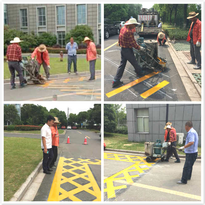 當天早上八點半左右,天氣晴朗、微風徐徐,項目經理帶著幾位師傅還有我們的保安開始他們的工作。他們先把地面劃好樣板線,然后用機器在上面一點一點的畫黃色禁停線,來來回回的,看著他們認真工作的樣子,不禁給他們點個贊。經過一天的辛苦工作,項目部的兩處消防通道禁停線完美收工。