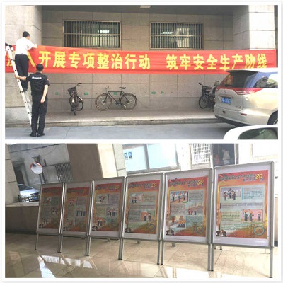 今天一早,立崗結束,保安隊長王宏臣帶領保安一起,在煙草項目后院懸掛“深入開展專題整治行動 筑牢安全生產防線”的主題橫幅。并在煙草大廈辦公大廳、電瓶車車庫等張貼了安全知識及安全宣傳標語,讓員工在知識學習中提高安全素養,在事故警示中強化安全意識,進而在實際工作中規范安全行為。