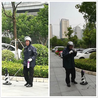 保安隊長立馬去更換衣服,雨衣穿起來,頭盔戴起來,把自己進行了全副武裝。主管拿來滅害靈遞給保安隊長,先用滅害靈對蜂巢噴射,讓上面的馬蜂飛走,然后拿鉗子把蜂巢夾下來,再拿火把蜂巢燒毀。整個動作一氣呵成,等到四散的馬蜂飛回來時候已經沒了老巢。