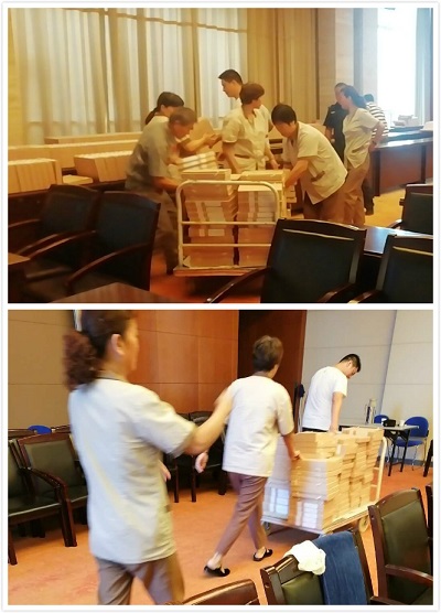 8月3號這一天,武進(jìn)水務(wù)大廈五樓正在召開一場由水利局建設(shè)處主辦的工程驗(yàn)收會(huì)議,會(huì)議資料整整齊齊的排放了大概六排,上千本臺賬資料供專家查看驗(yàn)收,我們會(huì)務(wù)人員在會(huì)場端茶倒水認(rèn)認(rèn)真真的服務(wù)著。會(huì)議從一點(diǎn)半開到三點(diǎn)半,驗(yàn)收結(jié)束后,建設(shè)處的幾名女員工看著這一堆堆的資料臺賬發(fā)愁,因?yàn)檫@些資料都是由工程部的幾個(gè)小伙子搬下來的,現(xiàn)在那幾個(gè)小伙子走了,這些資料不知道怎么搬運(yùn)。看到這個(gè)情形,項(xiàng)目部主管立即拿來幾個(gè)拖車,叫來幾個(gè)保潔阿姨,不一會(huì)就幫忙把這上千本的資料抬到檔案室去了。
