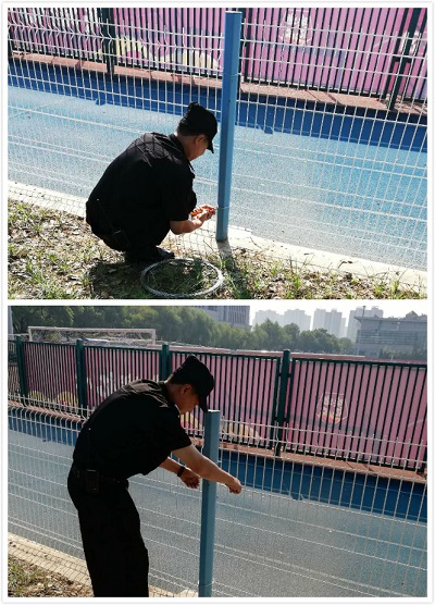 一天,項目部巡邏隊員張立財在巡邏中發現鐵絲網破損松動了,在鐵絲網內是剛剛新補種的小苗,于是他第一時間報告主管。保安隊長匯報了甲方,同時讓保安對奧體中心有這種破損現象的鐵絲網進行了統計。甲方讓物業協助購買了鐵絲,知道我們的保安動手能力很強,就把維修鐵絲網的任務交給了項目部。張立財拿著鐵絲、老虎鉗等工具在現場修理了起來。由于經常干活,他的動作相當熟練,鐵絲在他手里也仿佛變得格外柔軟順從,三下五除二就把圍網給箍緊扎牢了,圍網里新補種的小苗們也得到了及時的保護。