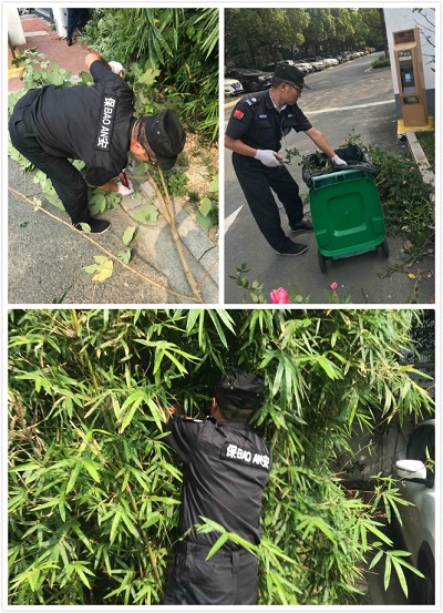 水務(wù)大廈外圍的綠化樹(shù)木已經(jīng)從原來(lái)的小樹(shù)苗長(zhǎng)成參天大樹(shù),背面停車(chē)場(chǎng)通道上,有的樹(shù)枝已經(jīng)延伸到路當(dāng)中,擋住了路人的行走視線,有的長(zhǎng)得高超過(guò)了電線桿、遮住了路燈,使得路燈在晚上照明亮度有限。為了更好的服務(wù)于甲方,讓每一個(gè)人都身在一個(gè)干凈明亮舒適的環(huán)境中工作生活,項(xiàng)目部員工自己找來(lái)工具,準(zhǔn)備對(duì)過(guò)于茂盛的樹(shù)枝進(jìn)行修剪。路邊帶刺的月季花的枝葉長(zhǎng)到了路當(dāng)中,就戴上手套把它修剪掉,長(zhǎng)得太高的枝葉用鐮刀割下,讓路燈露出了頭。不一會(huì)會(huì)就修剪出一大堆樹(shù)枝,為了更好的方便垃圾清運(yùn),把工作做到細(xì)致,員工們又用剪刀把樹(shù)枝剪成一段一段,用垃圾袋裝好堆放到固定點(diǎn)。