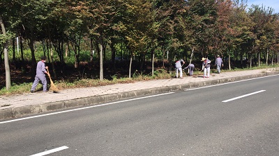 溧陽駕培中心科目三考場,城市大道兩側人行道雜草叢生,甚至長得比人都高,因平時考訓期間,車輛、人員較多,不能進行清除工作,于是物業項目部安排保潔在十一節假期間進行清理雜草工作。